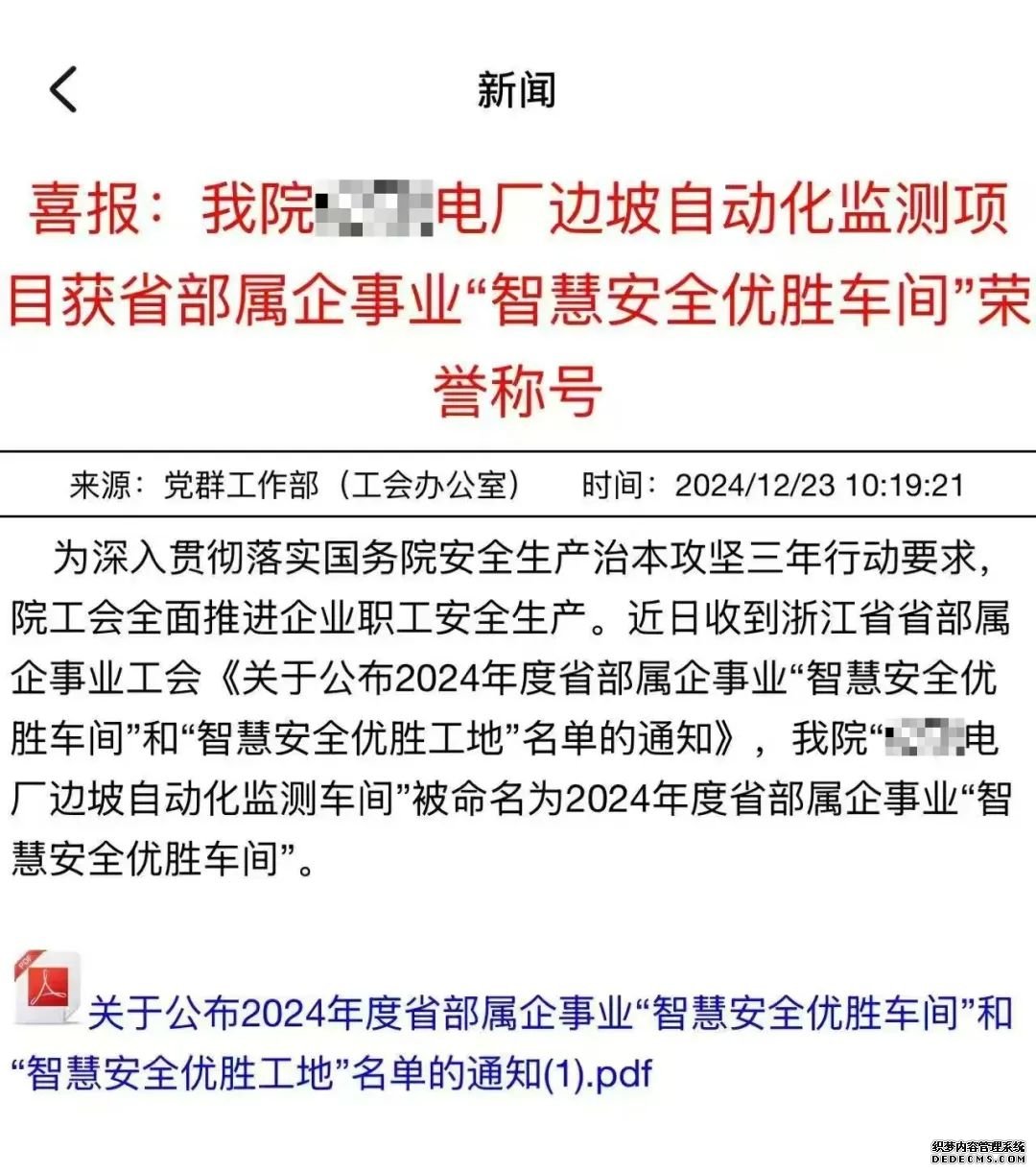 我司受客戶委托進行邊坡自動化監測,項目完成后,客戶獲浙江省省部屬企事業工會評選的2024年度“智慧安全優勝車間”榮譽稱號。這不僅是對客戶在安全生產領域積極探索和實踐的高度認可,也充分體現了我司在數字化邊坡監測領域的技術實力和專業能力。